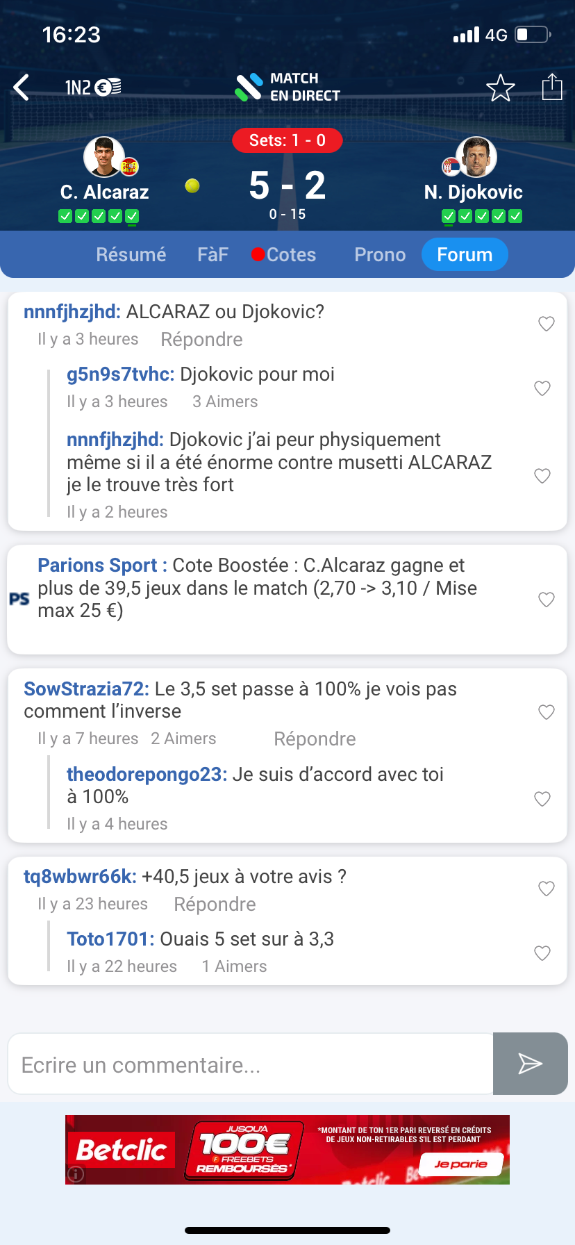 Force aux parieurs fou qui ont mis leur maisons ou leur crédit appart sur le 3,5 sets à 1,33