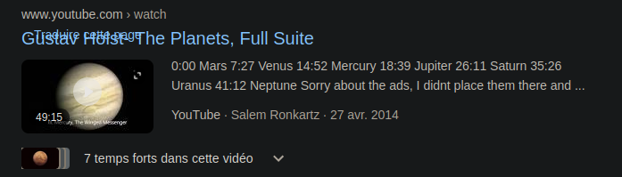Du coup ceux qui kiffaient écouter du Williams vous pouvez aller écouter Holst, évidemment Mars n'est pas le seul banger :