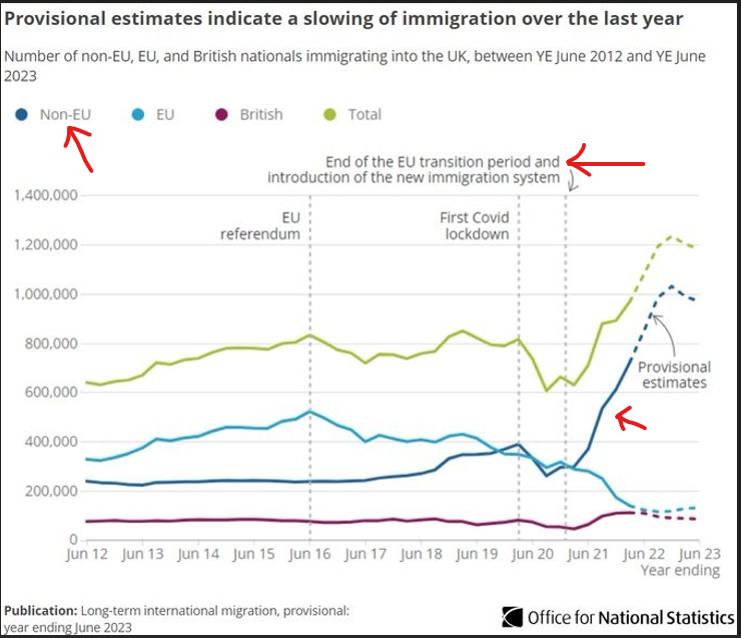 Mdr quelle réecriture de l'histoire le matrixé ? Forcément pour le Brexit si on change pas le pouvoir en place ça peut pas marcher au niveau de l'immigration. Mais ils auraient eu l'opportunité de la réduire s'ils la filtraient plus. C'est le fait qu'ils aient quitté l'UE qui attire mais est ce qu'ils comptent les sans papiers venus d'Europe dans ton graphique ?