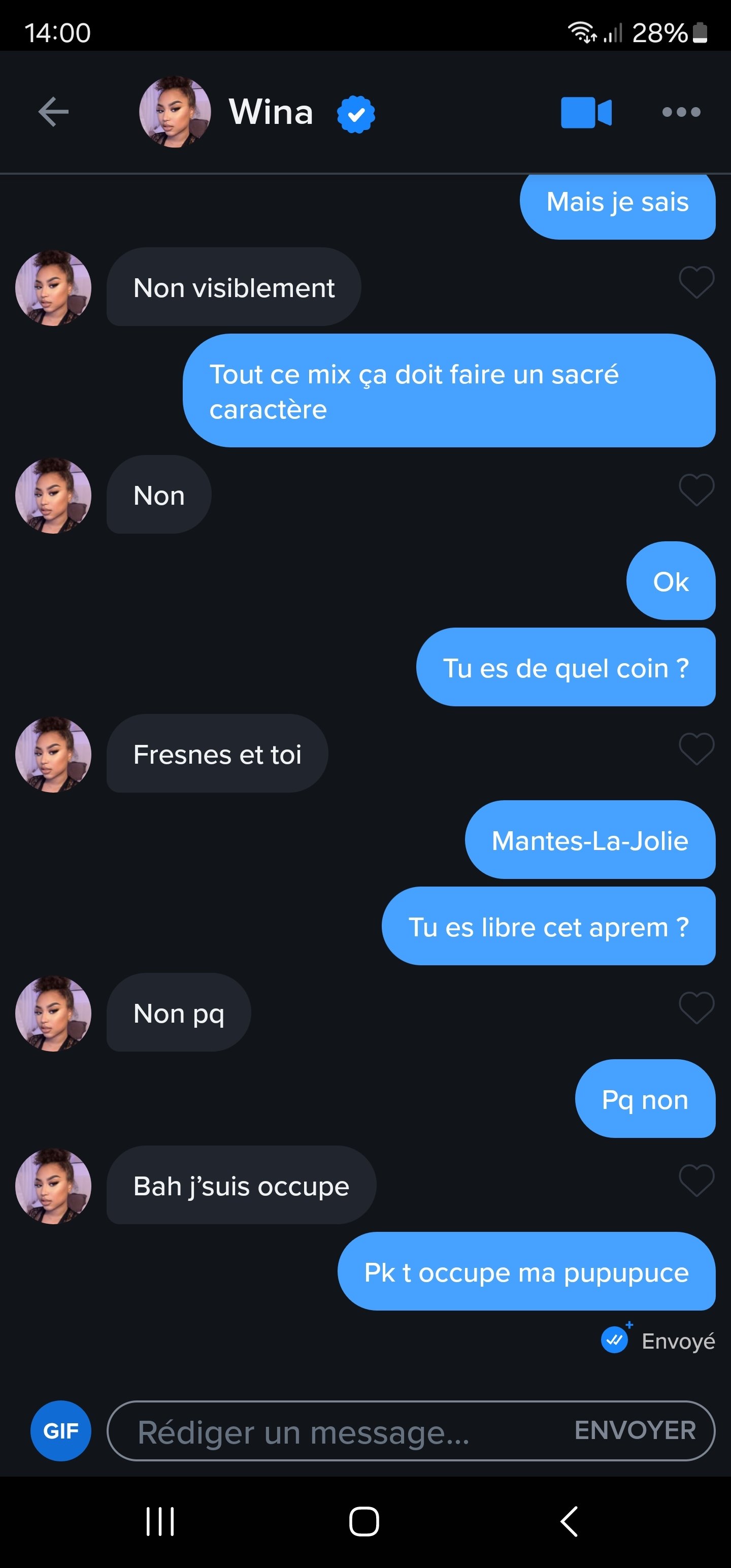 Le 10 juillet 2024 à 14:01:02 :Le 10 juillet 2024 à 14:00:17 : n'hésite pas à envoyer un "up" si elle répond pas