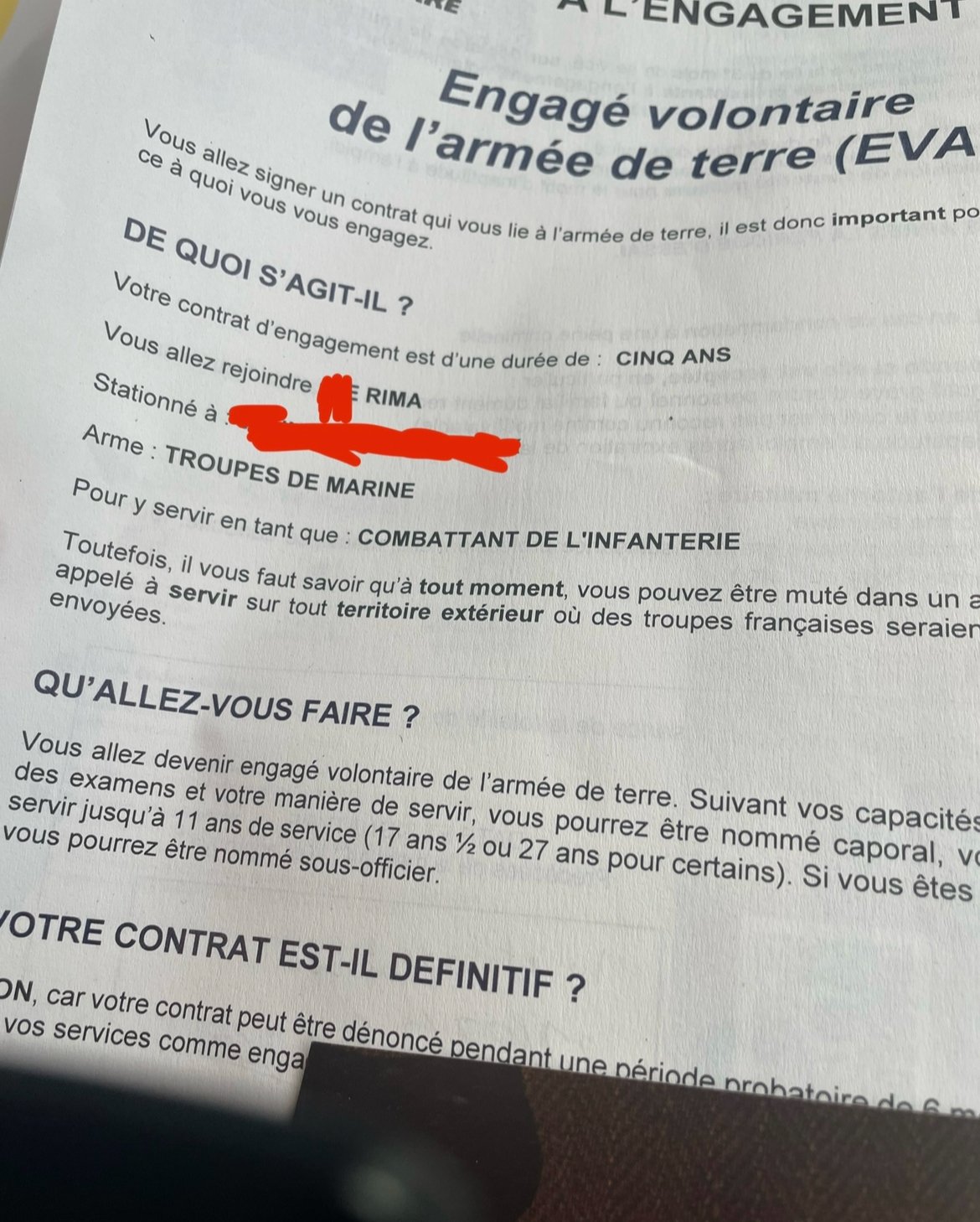 Marine, air , terre ?Armée de terre, je ne dirai pas lequel, mais c'est un RIMa et j'ai signé pour 5 ans.