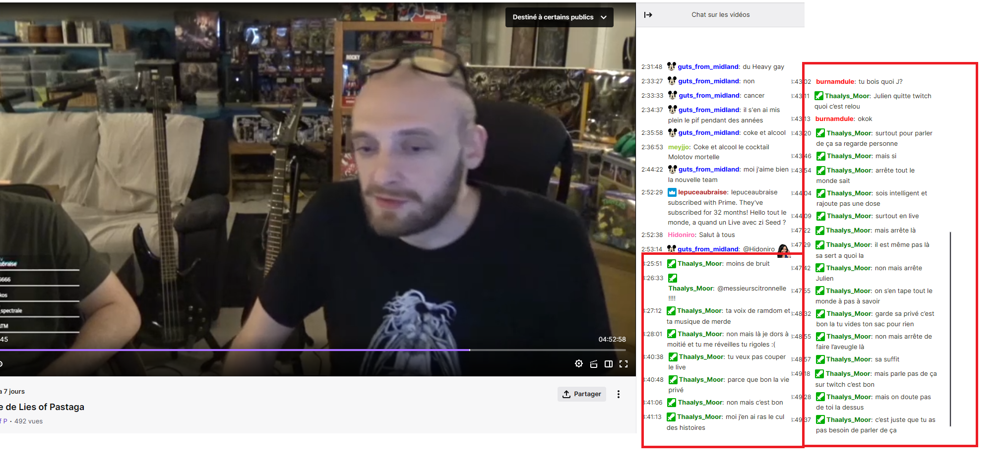 Pendant le live de la semaine dernière où se permet de juger, insulter et menacer Mathieu à partir de 4h40 :