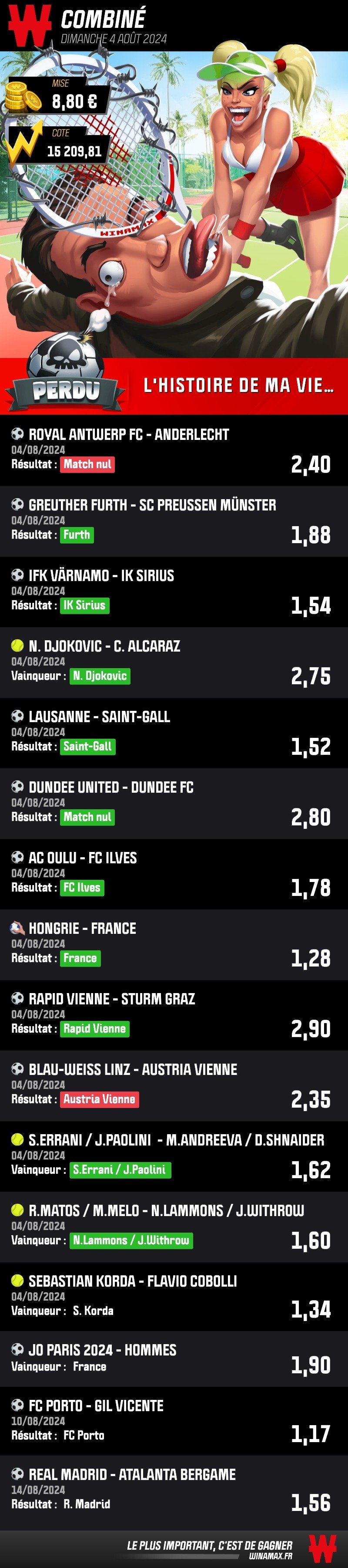 Le 04 ao没t 2024 脿 19:31:16 :Le site se fout de votre gueule en mettant que perdre c'est l'histoire de votre vie et des gens continuent d'y aller