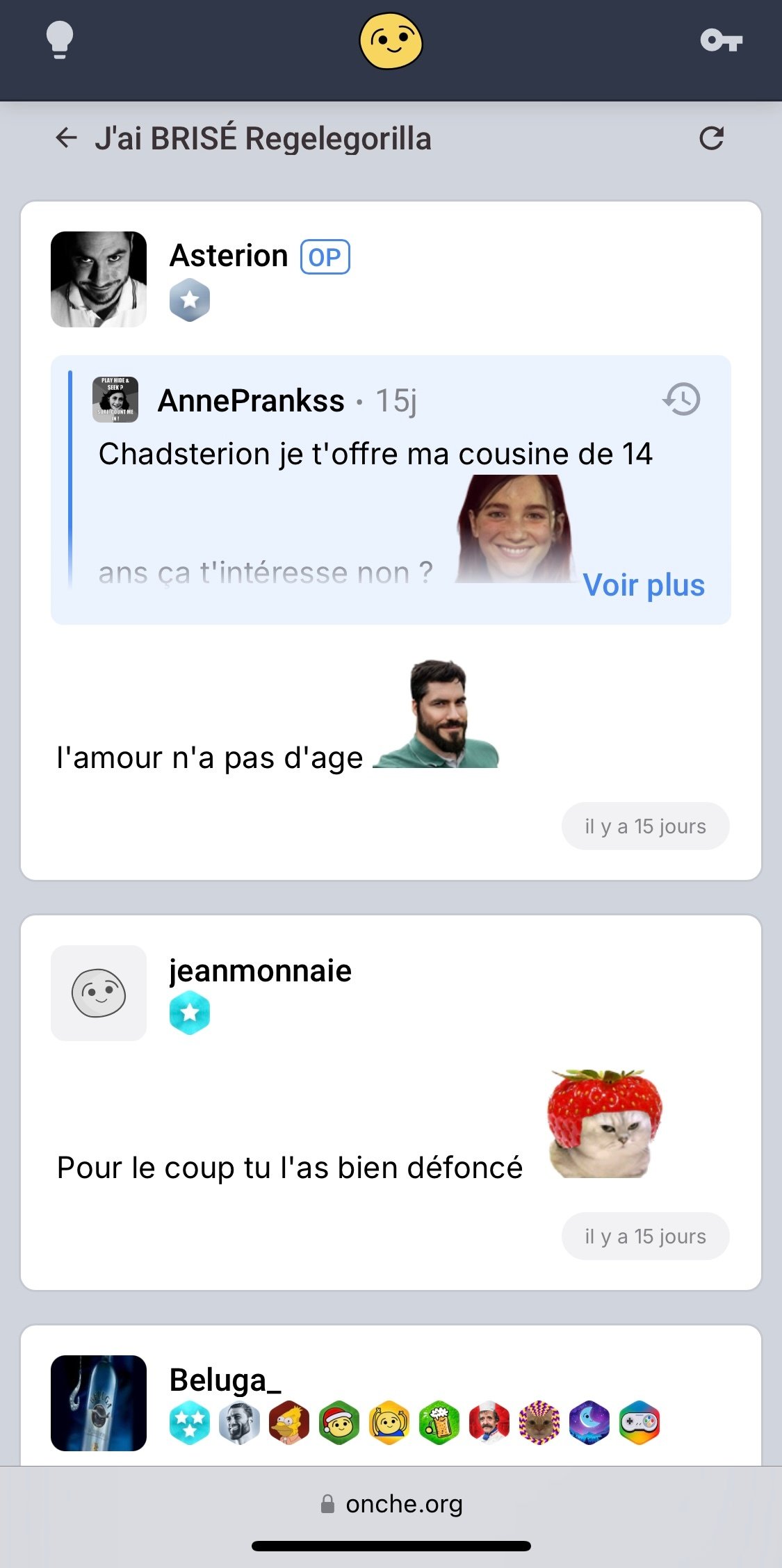 https://x.com/asterionlebon/status/1874466130187935855?s=46 (se vante régulièrement que des jeunes femmes de 20 ans le dragueraient et lui enverraient des nudes)