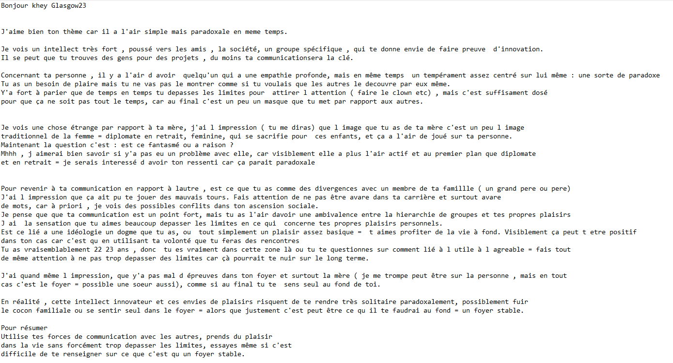 Bonsoir, j'analyse votre thème natal : vous pouvez me l envoyer en message privé ou ici = comme vous voulez.