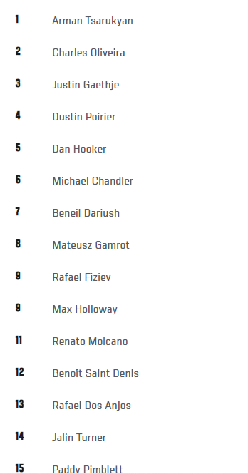 le classement n'est qu'un indicatif, poirier n'est plus là, gaethje quasiment plus là, hooker est loin du titleshot.