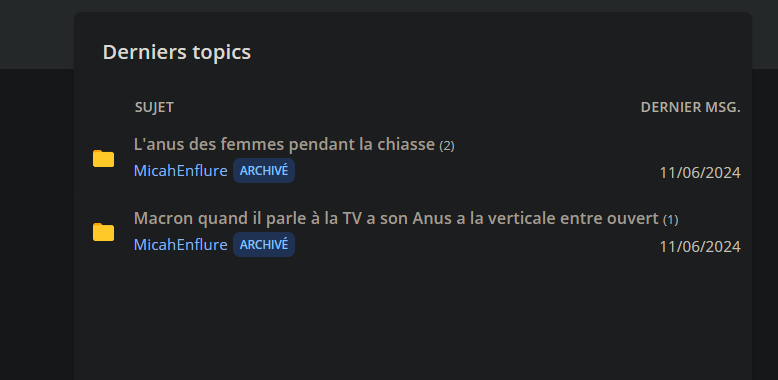 Bordel mais ferme-là vieux déchet, tu as deux topics à ton actif et c'est deux topics qui parlent d'anus
