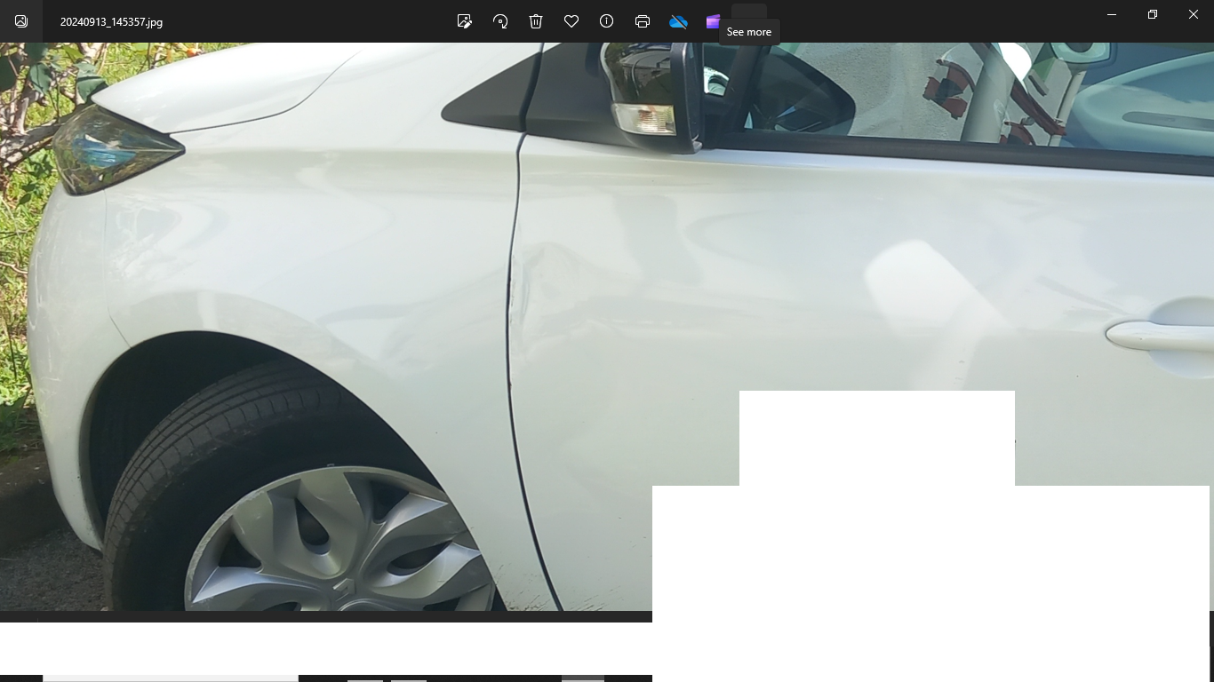 Je suis reparti déjeuner chez moi suite a ca. Je viens de dire a mon patron que j’étais malade et que je ne viendrai pas cet après midi. La voiture du boulot est dans ma résidence. Je vais attendre lundi que le mec la règle et normalement elle se fermera normalement. Mais il y aura toujours de gros impacts sur la carrosserie. Ca se voit bien quand on est proche, mais pas trop.