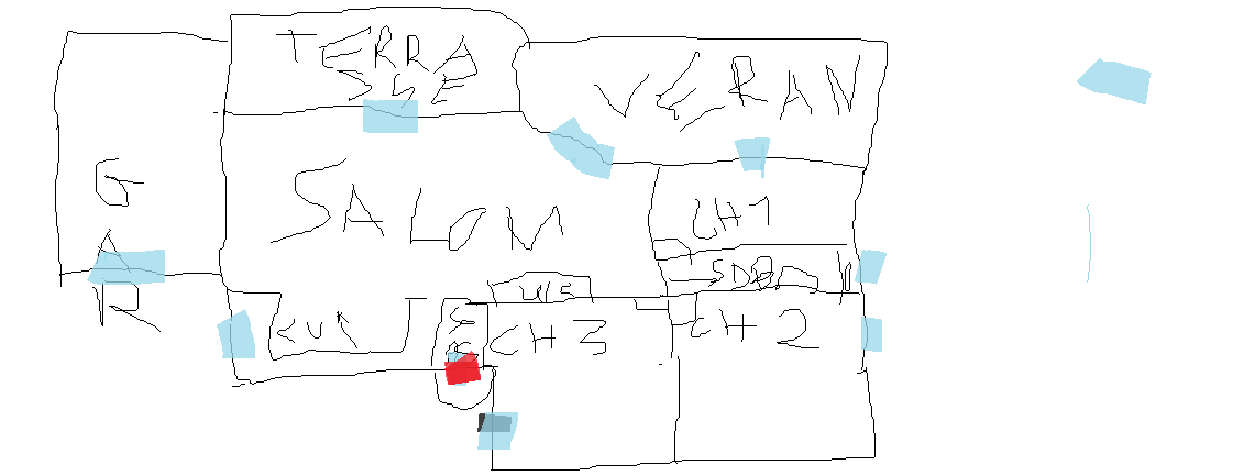 Mais j’avoue que perdre mon bureau ça me fait un peu chier…je te donne le plan de ma maison c'est grossier sous paint l'échelle n'est pas toujours respectée on a une baignoire dans la largeur de la salle de bain et une douche en entrant a droite. Le point rouge signifie l'entrée et le sas. 110M² environ sans le garage je crois.