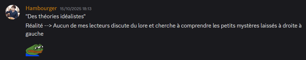 Laisse moi pas te rappeler que c’est justement car tu t’amusais pas à fomenter le trouble avec la magie que nous nous sommes pas affrontés lors de ce duel