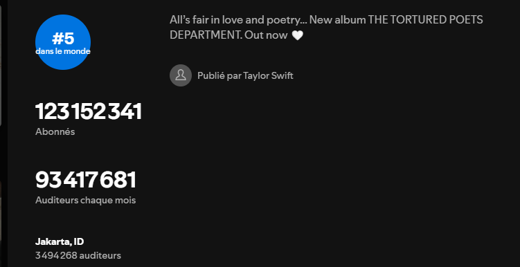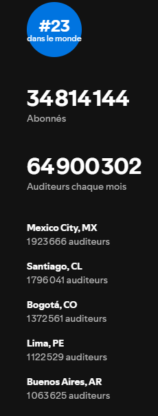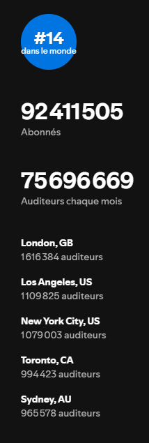 1milliards 400 millions sa chanson la plus streamé, 82 millions d'auditeurs mensuel et personne n'en a jamais entendus parler