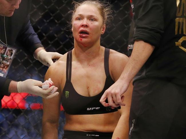 5-Ronda Rousey, célèbre pour ses combats épiques qui ont captivé le public du monde entier, 1m68 pour 61kg ![]()