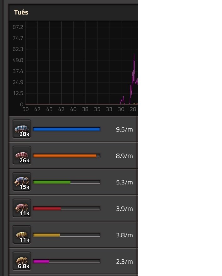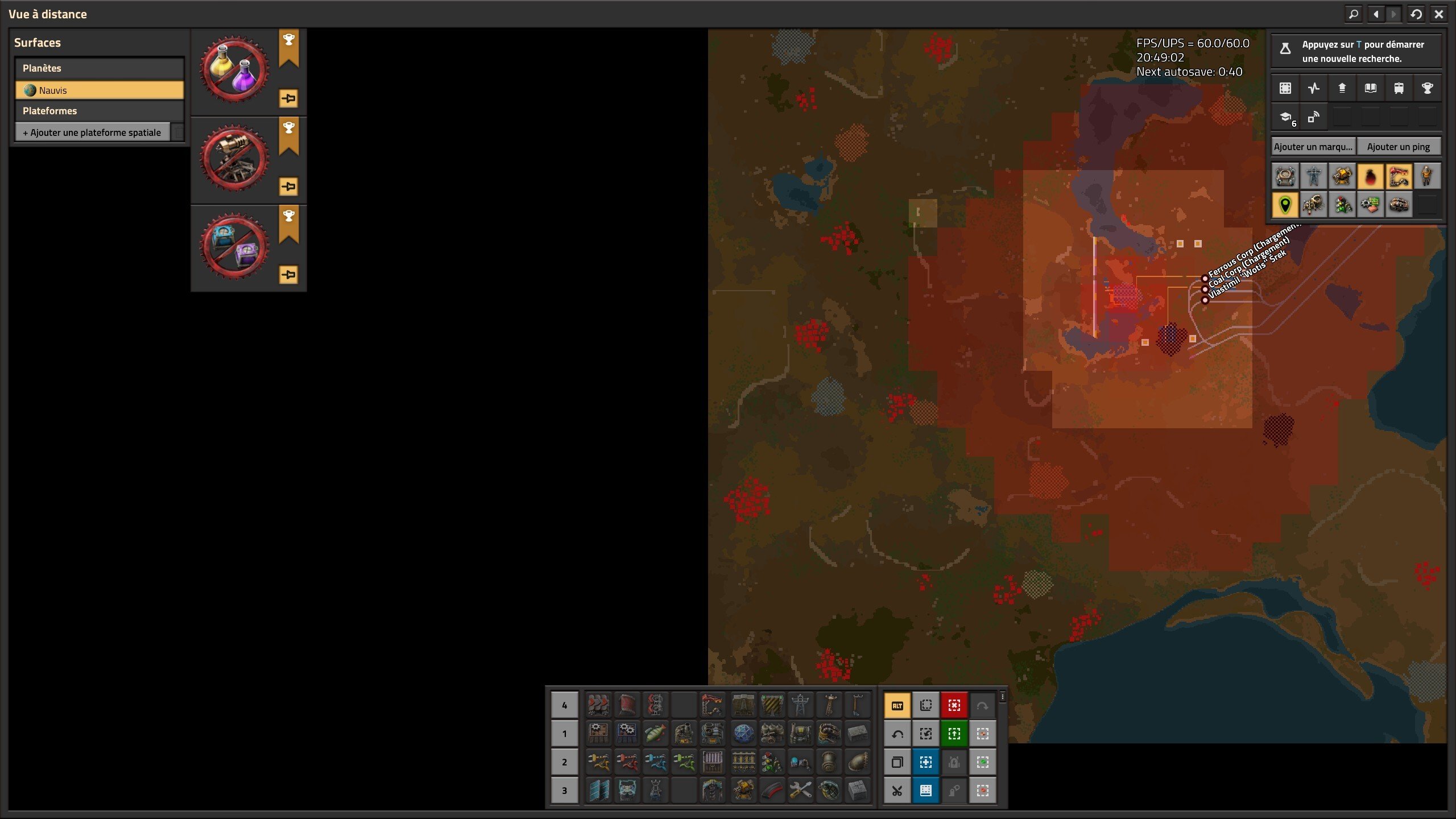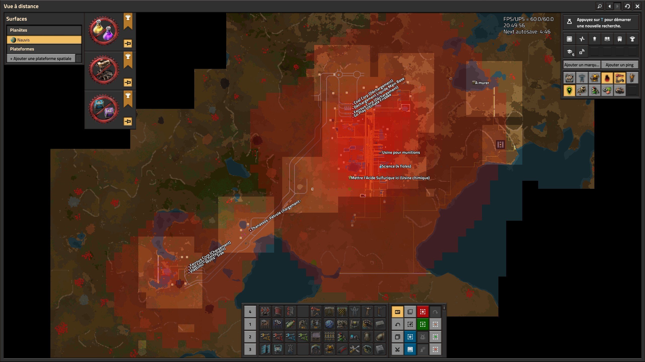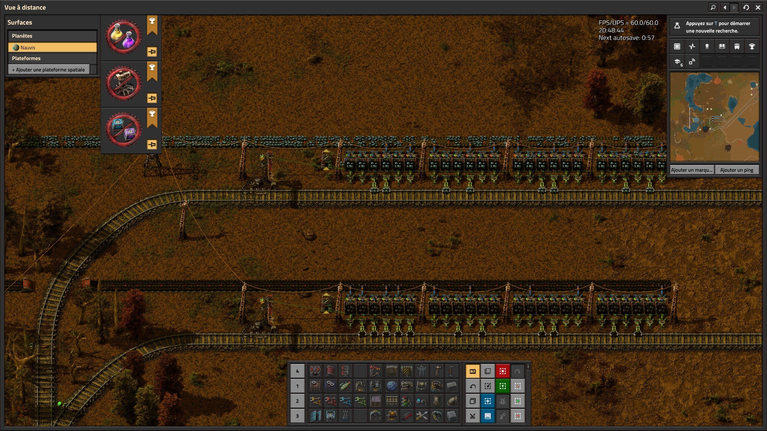 Perso je fais un peu du surplace, j'ai complétement maxer la science bleue et militaire, mis en place mes réseaux de bots sur toute l'usine et développé un réseau ferroviaire suffisamment robuste et autonome pour le moment.