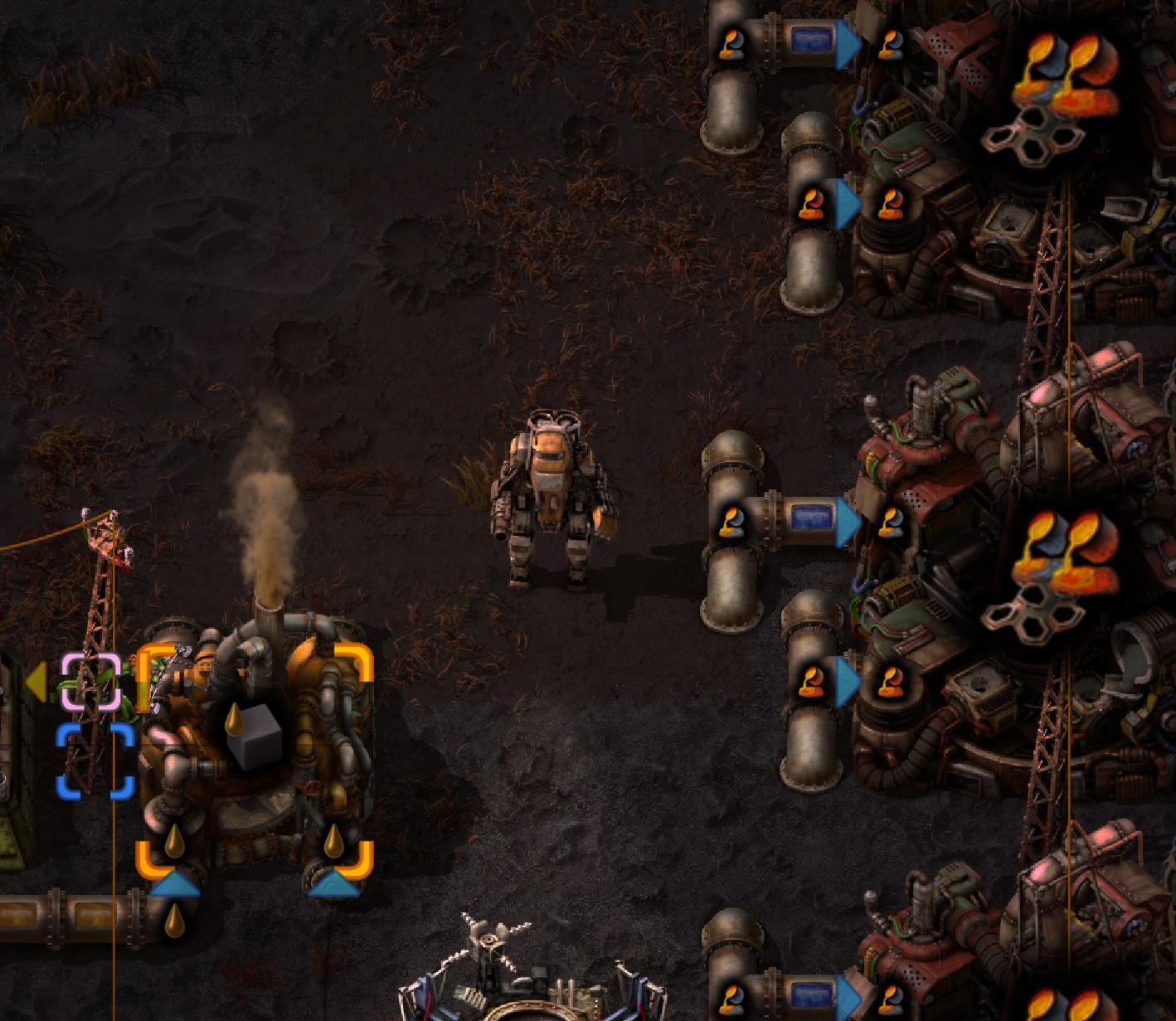 Mais avant ça, je voudrais faire en sorte d'avoir des petites usines qui produisent chaque fluide séparément : actuellement, j'ai foutu toute ma production à la chaîne en ce qui concerne la gestion du pétrole, et c'est absolument pas modulable facilement, contrairement aux trains...