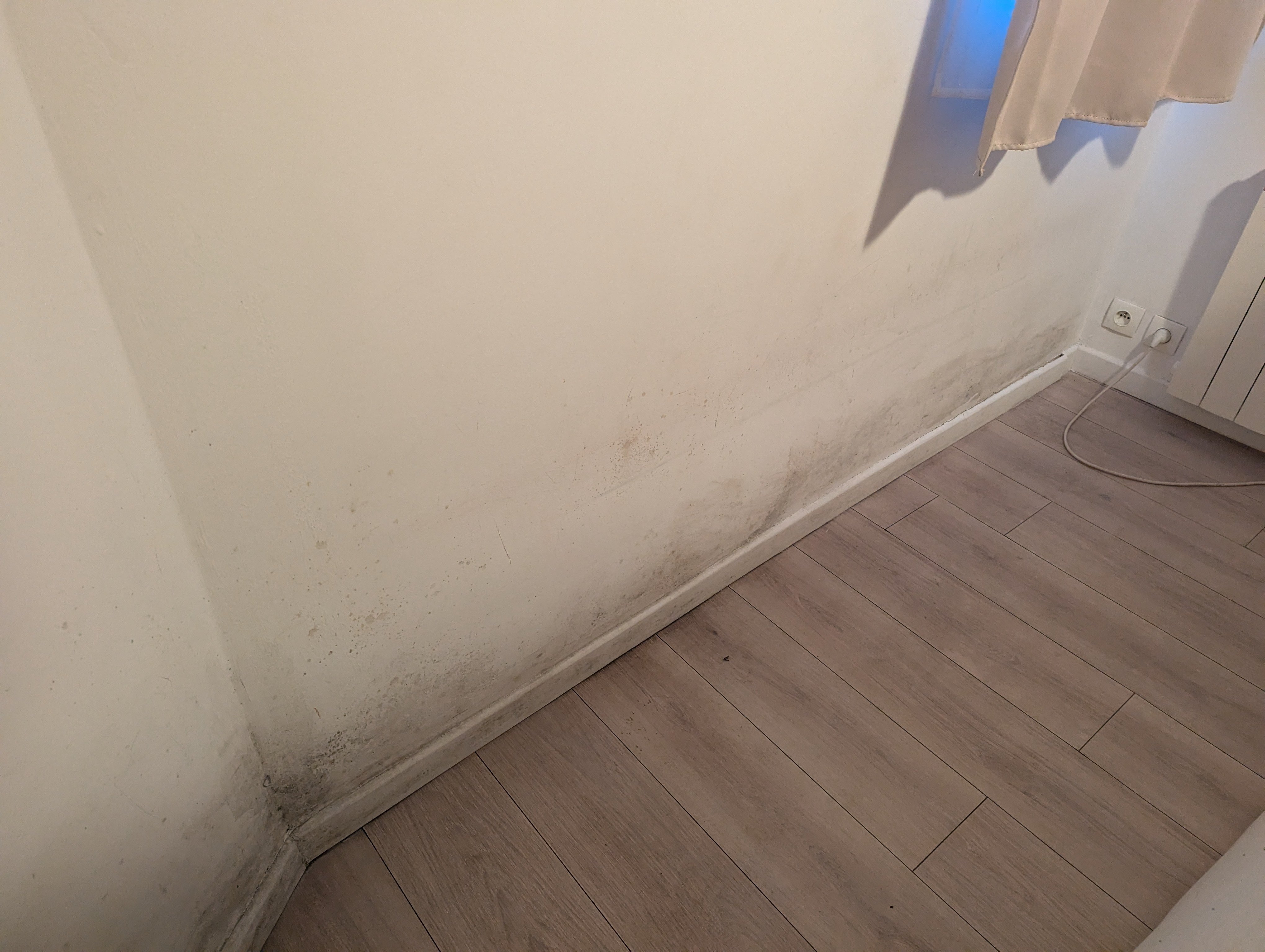 En tout cas c'est pas grand chose, essaye de faire partir les moisissures avec de la javel, si cela ne part pas, demande au propriétaire un coup de peinture, si il refuse fais le sinon bye bye la caution