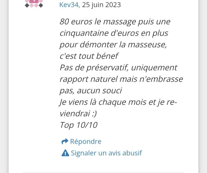 Les finitions y a moyen de baiser la masseuse ?Ça dépend des masseuses mais c'est bien rare