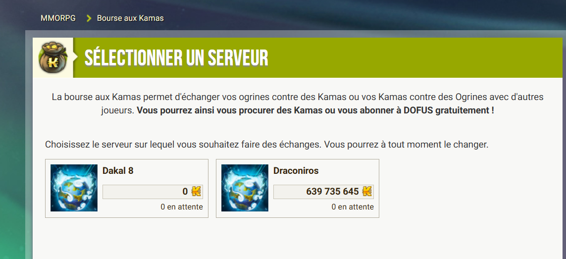 Essaye sur le site, ça devrait le faire https://www.dofus.com/fr/achat-kamas/achat-kamas