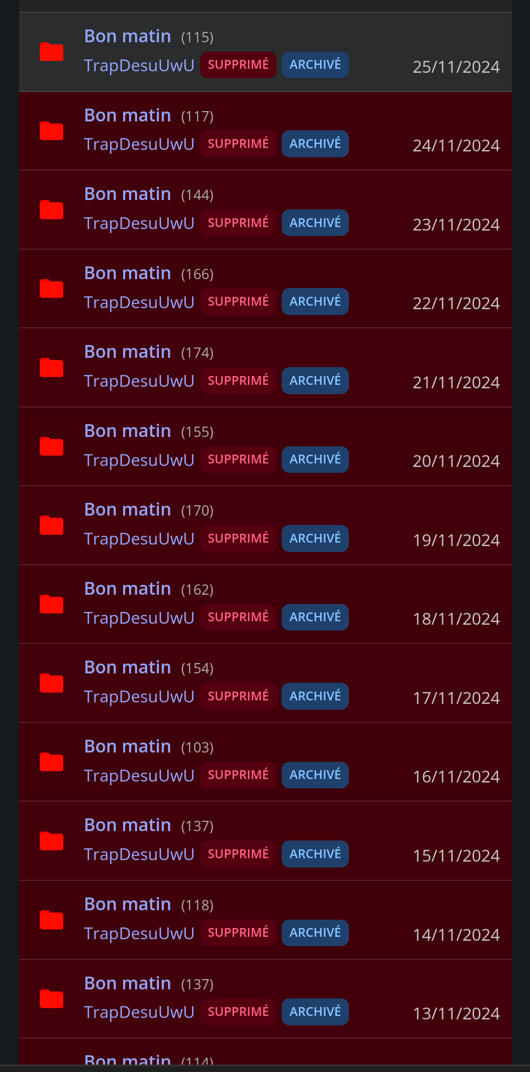 Boucle de zinzinTechniquement c'est pas une boucle vu que tout les messages sont differents chaque jours