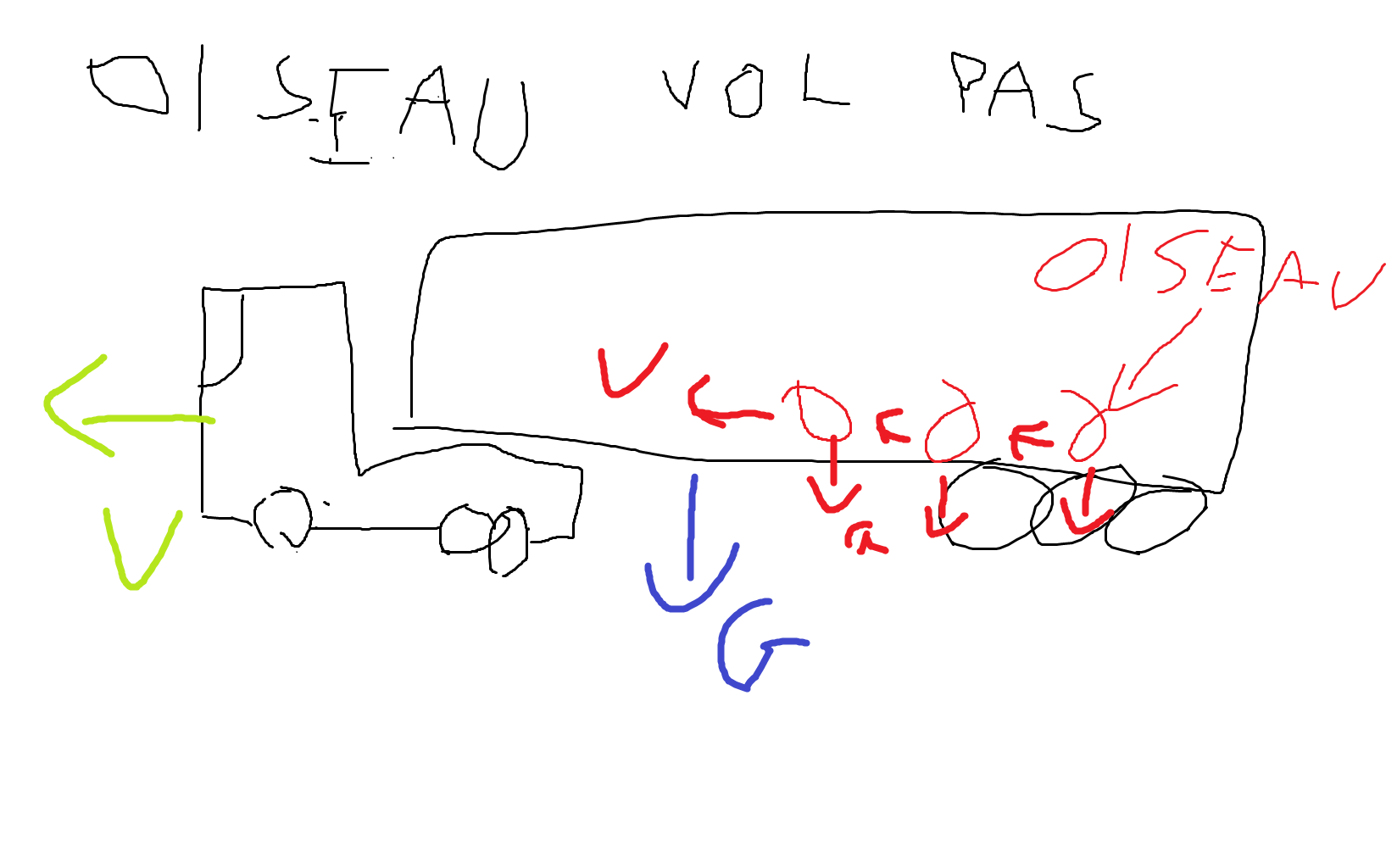 Les oiseaux volent car il generent une poussée verticale avec leurs ailes. Le camion pese 21 tonnes quoiqu'il arrive.