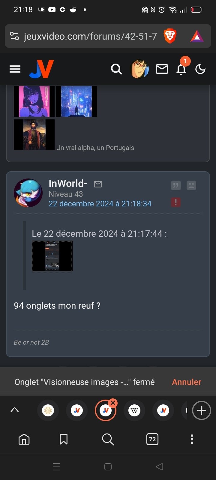 Le 22 décembre 2024 à 21:18:34 :Le 22 décembre 2024 à 21:17:44 : 94 onglets mon reuf ?