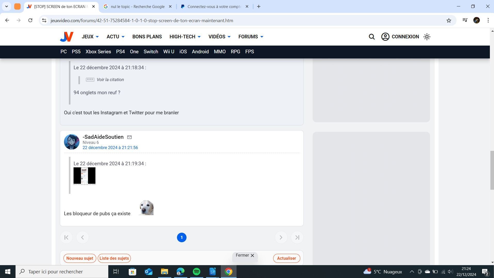 Le 22 décembre 2024 à 21:21:56 :Le 22 décembre 2024 à 21:19:34 : Les bloqueur de pubs ça existe