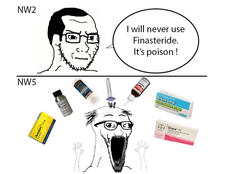 Peut-être un jour on trouvera la solution parfaite face à ça comme le clonage des follicules pileux j'en sais rien; je dis juste que pour le moment le Fina n'est juste pas à présenter comme une solution miracle c'est tout.