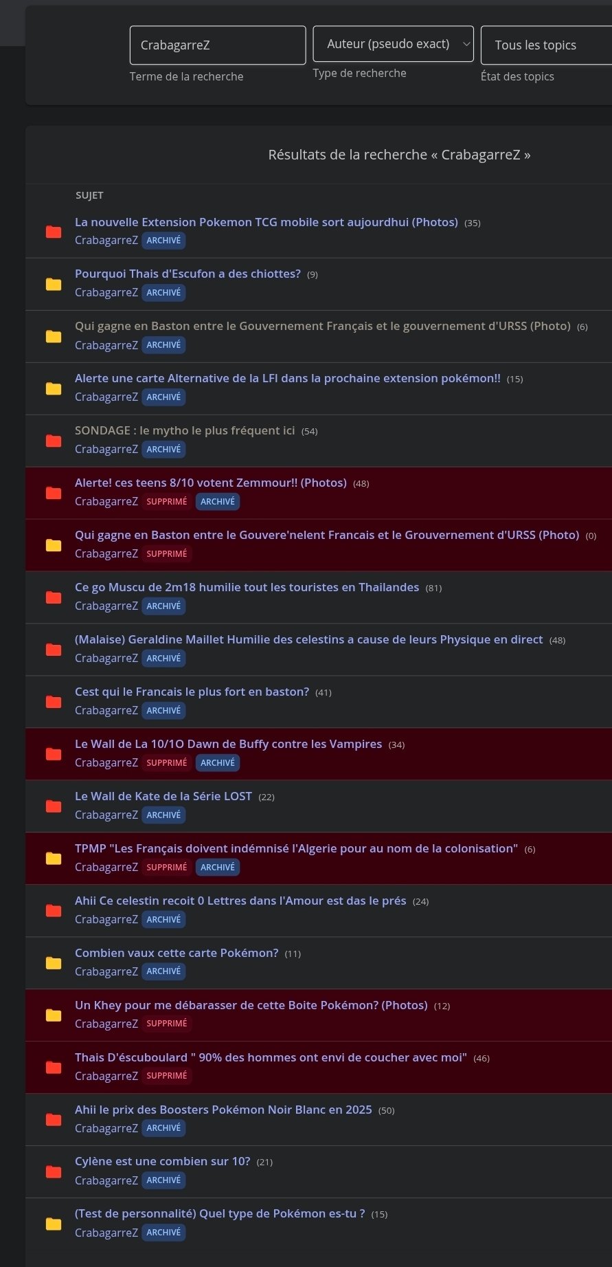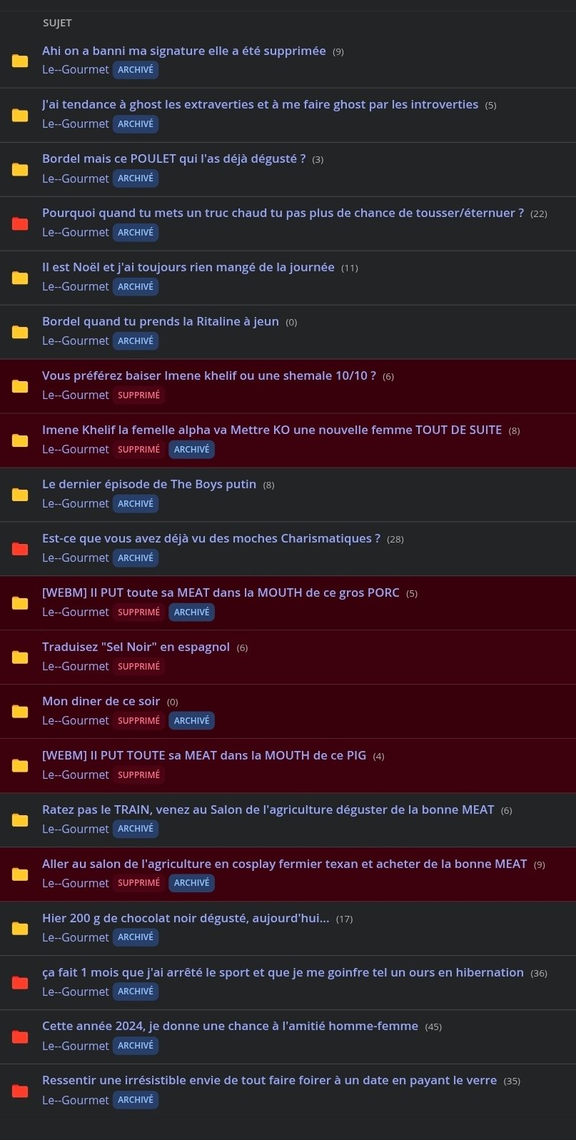 Merci de donner de l'attention à mes topics, ya aucun topic que je n'assume pas si tu veux je peux même te donner le résumé d'un topic qui t'intrigue dans cette liste