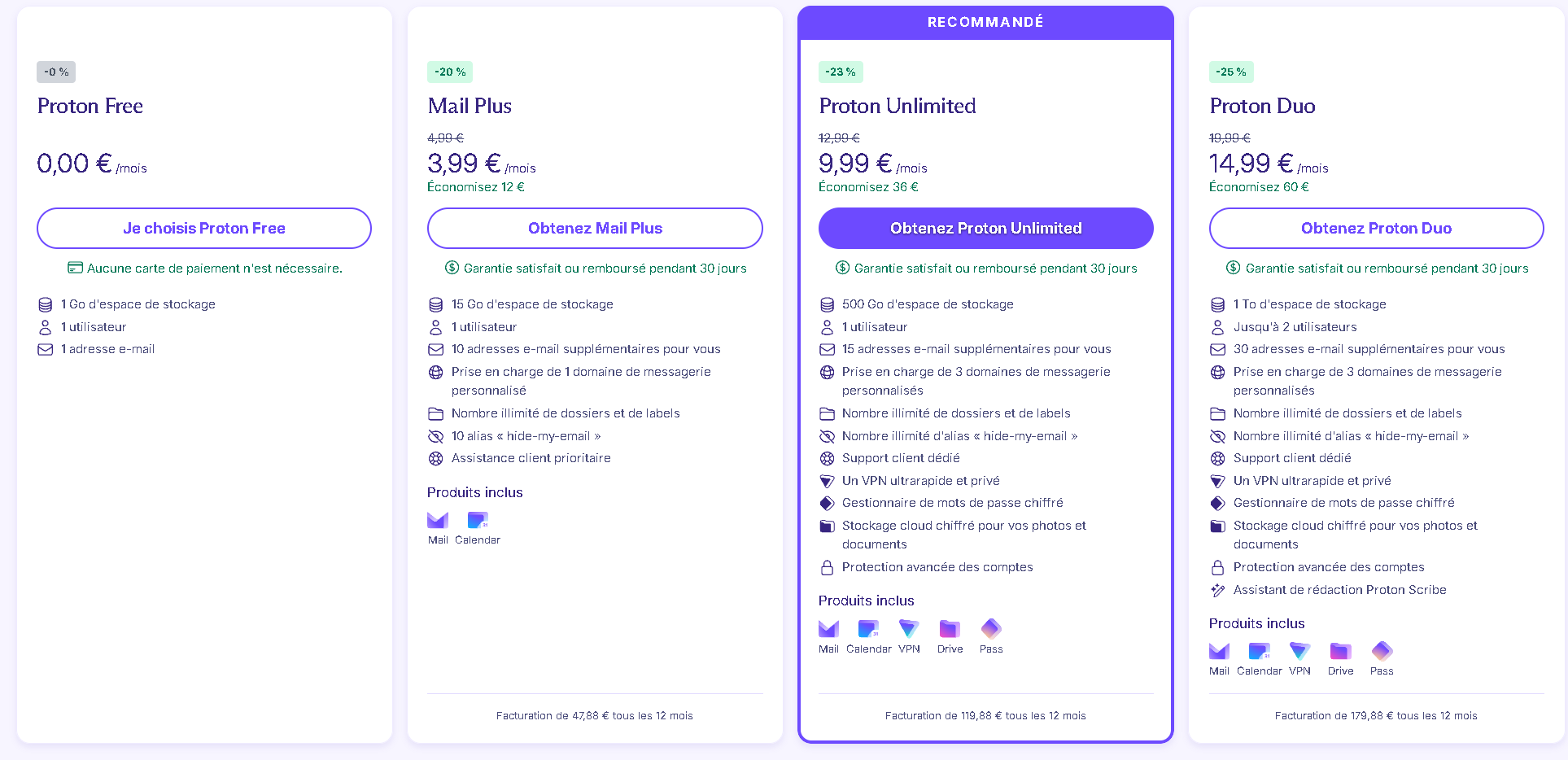infomaniak c'est suisse aussi mais pas chiffré de bout en bout 20 go de mail et 15 go de drive gratuitMail en @ikmail.com ou @etik.com ou @ik.me