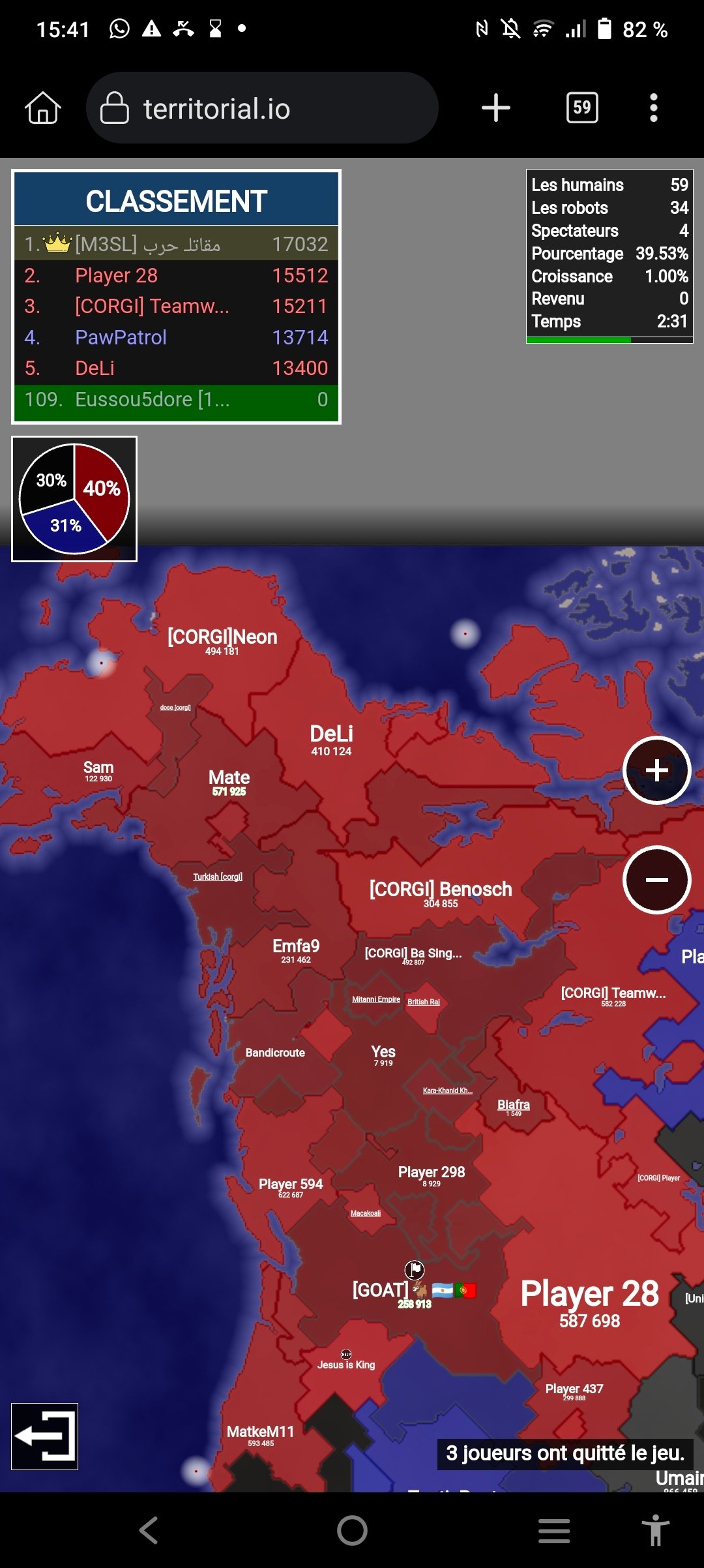 Bon on gagner a 65 % moi encore une fois je suis bloqué par des débile