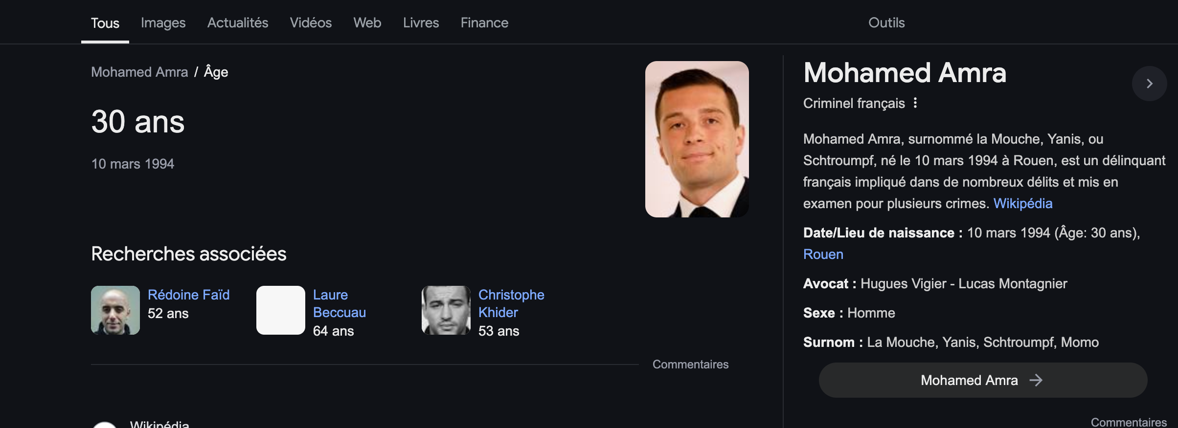 Tapez "Mohamed Amra age" sur google