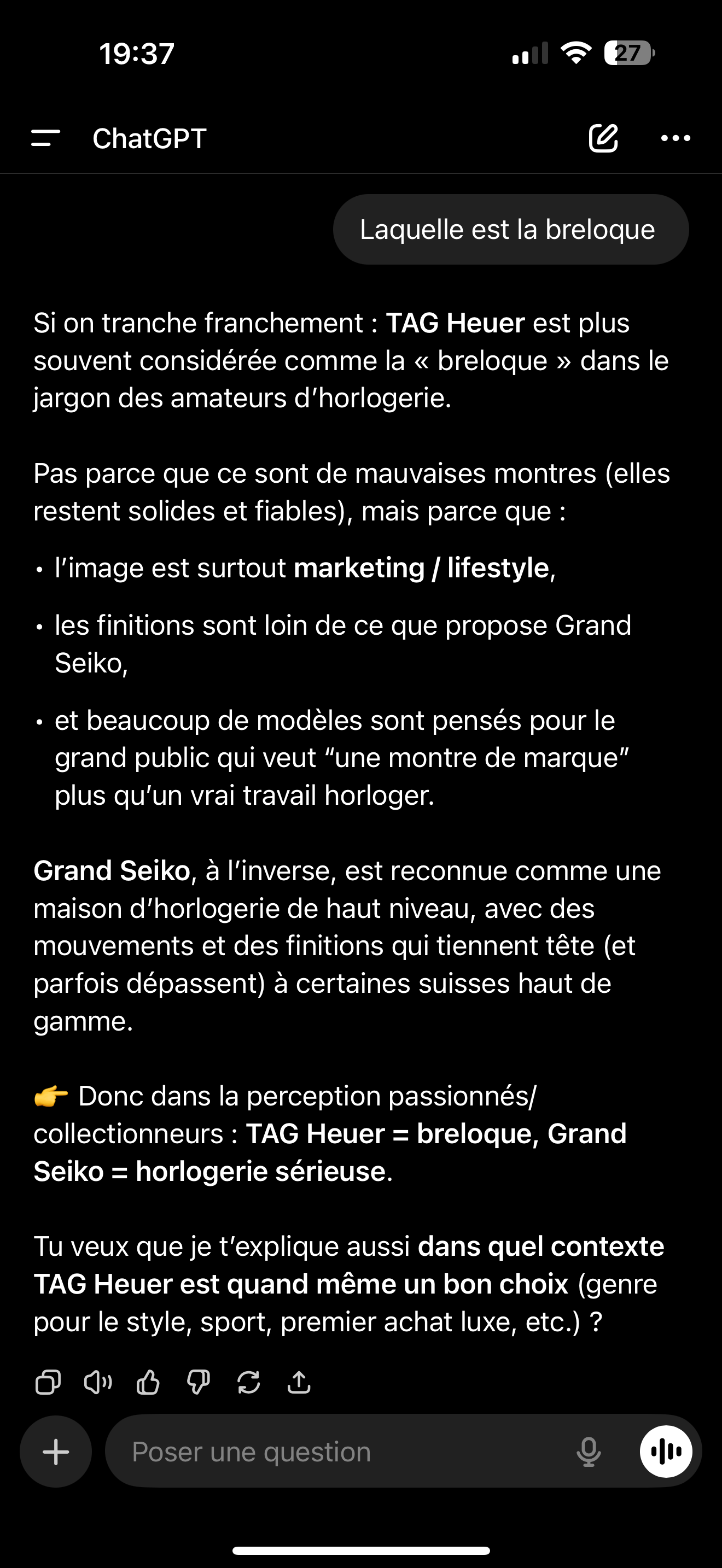 Si t'y connaissais quelque chose aux montres tu saurais que n'importe quelle tag est zinzin