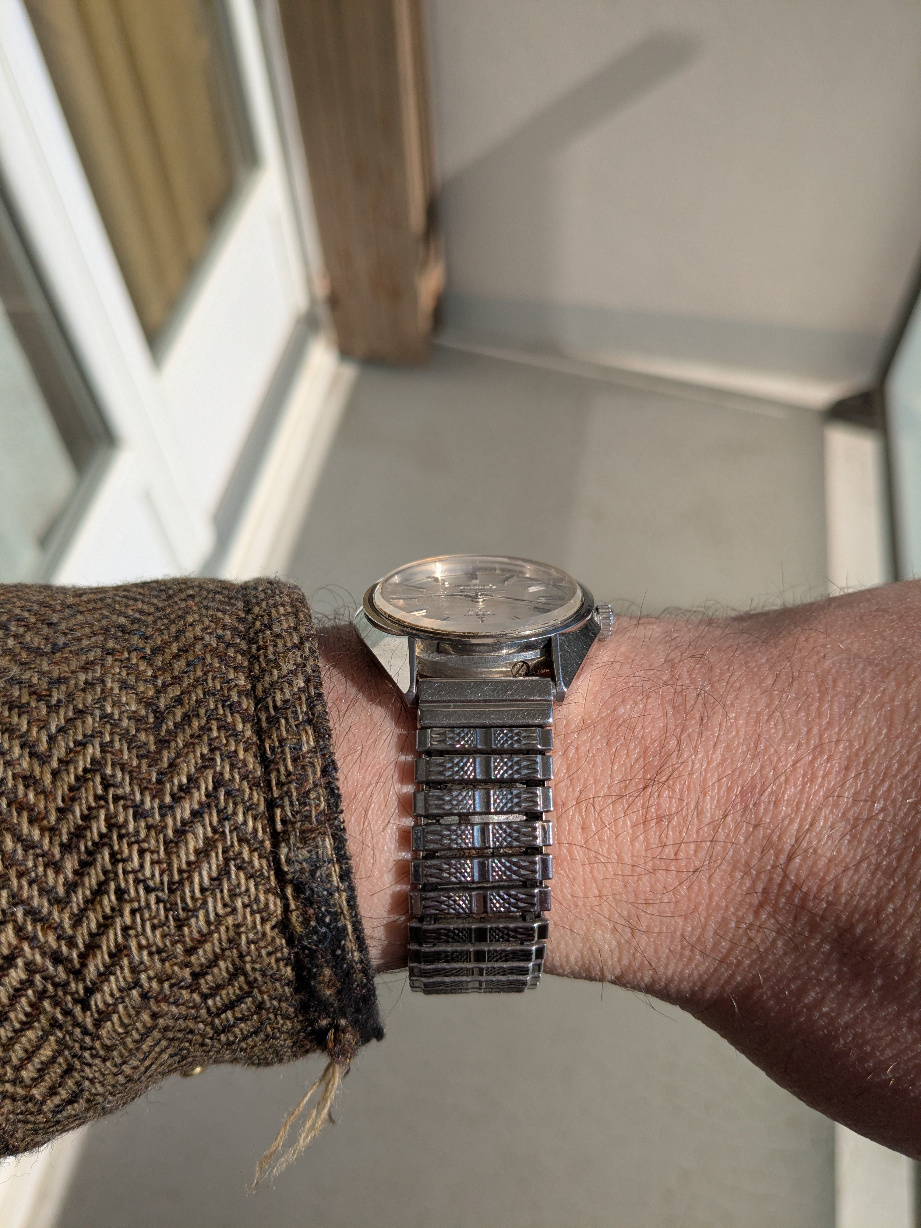 Bracelet rend moins bien que je pensais mais j'ai un faux cuir alligator noir (veau) qui ira très bien dessus.Je ferai un avant après le coup de jeune.