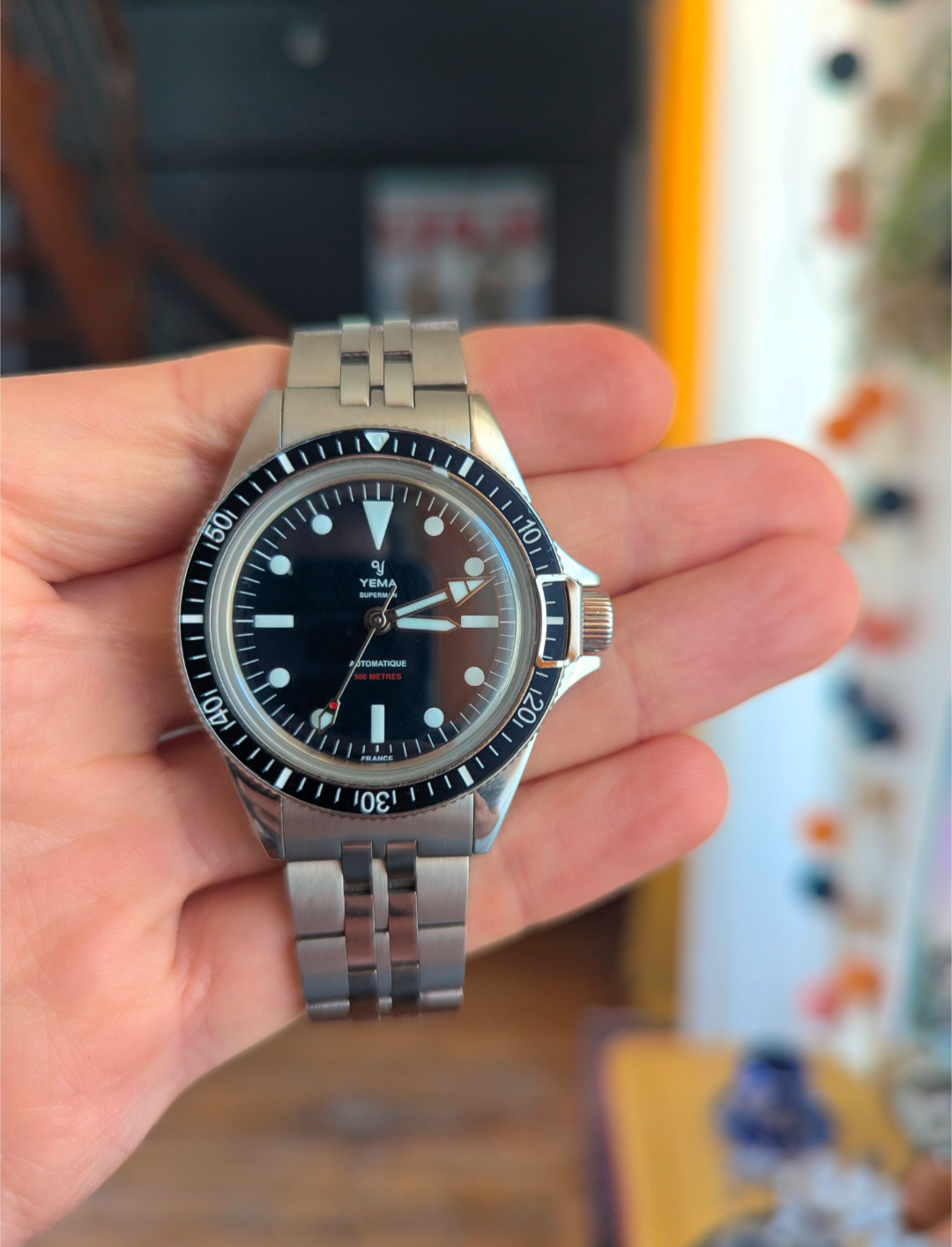 Je l'adore, je me suis tourné vers un modèle d'occasion car yema ne produit plus pour l'instant de cadrans dans cette teinte qui varie du noir au bleu outremer selon la lumière