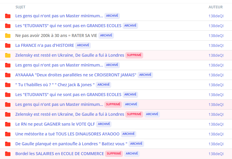sa boucle sur de Gaulle m'avait fait rire globalement on voit que l'op est assez limité intellectuellement, c'est un autiste low function qui a des fixations hyperspécifiques sur quelques sujets