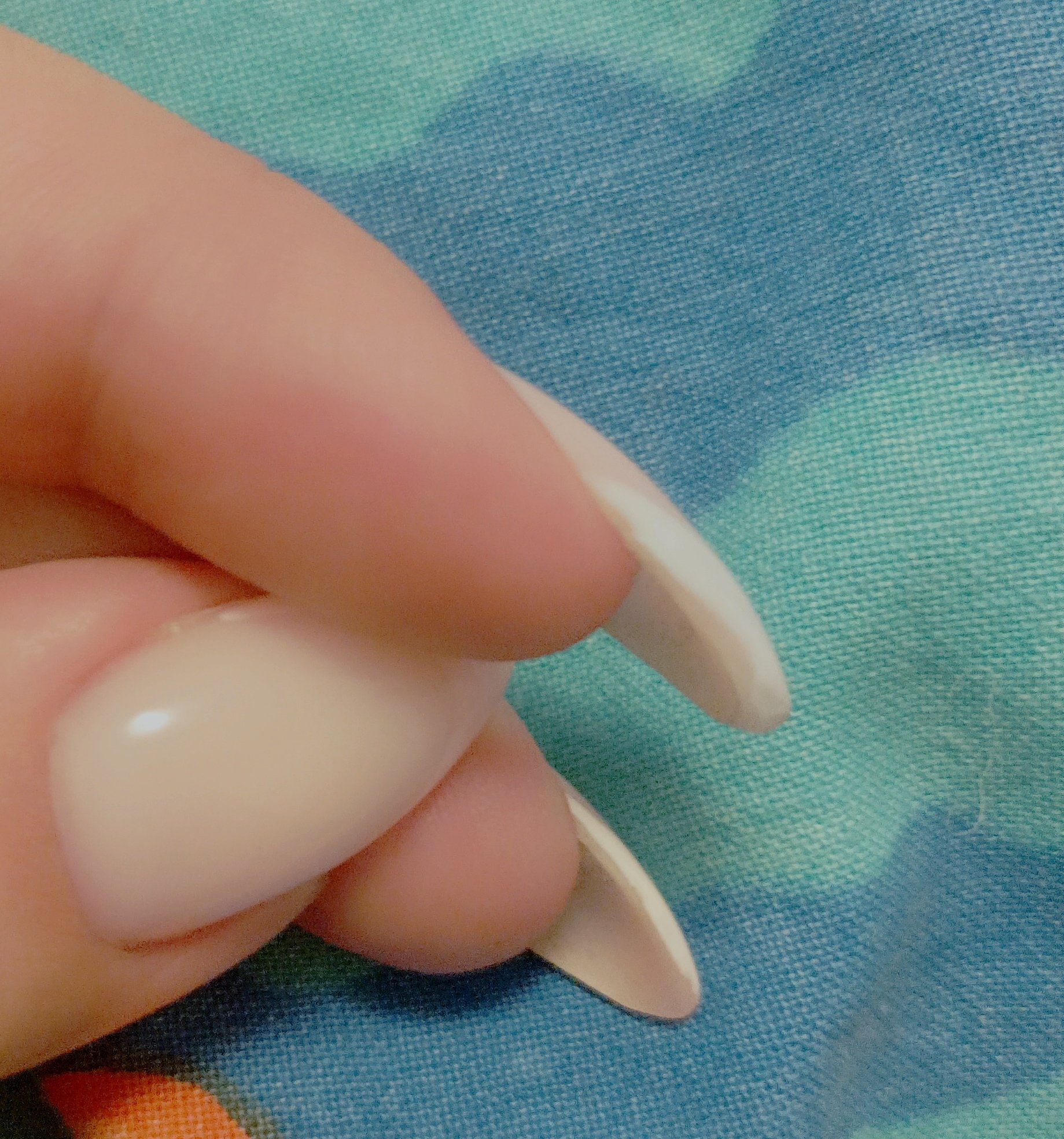J'ai RDV dans 2 semaines pour reprendre la manucure, et j'ose toujours pas faire des formes comme çaC'est pas pointu, en vrai, le bout est rond et non tranchant