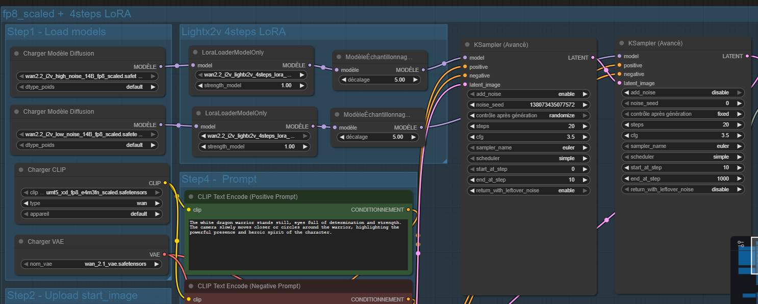 CFG à 1 si tu mets plus ça sert à rien d'utiliser les lora Lightx2v.