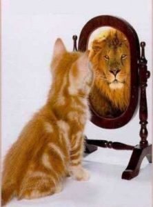 Et je dois t'expliquer que dans cette situation c'est toi qui voit ca dans le mirroir et que le chat lui te voit le regarder.