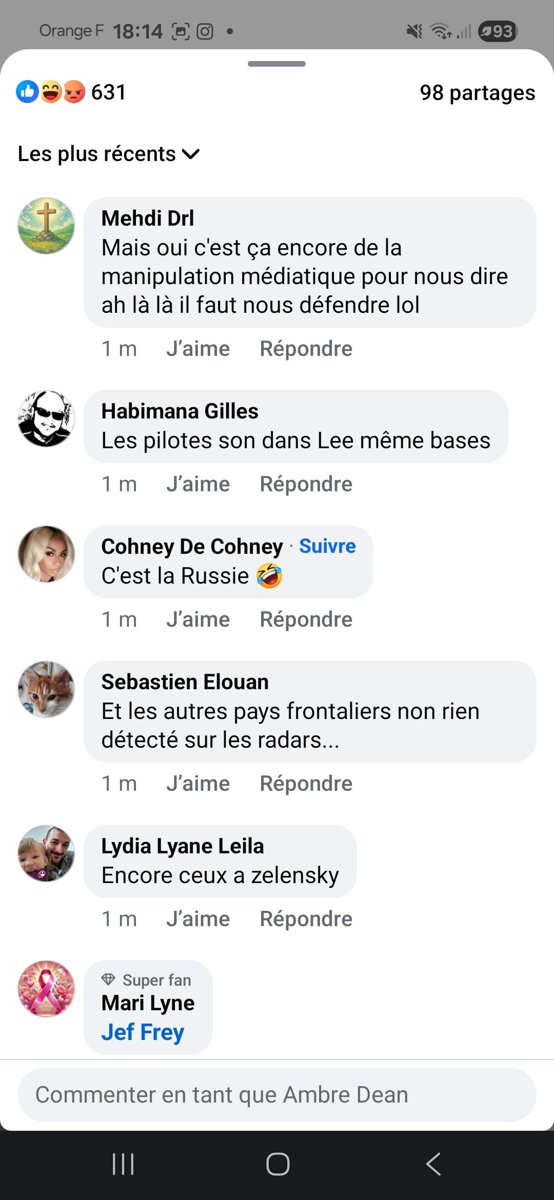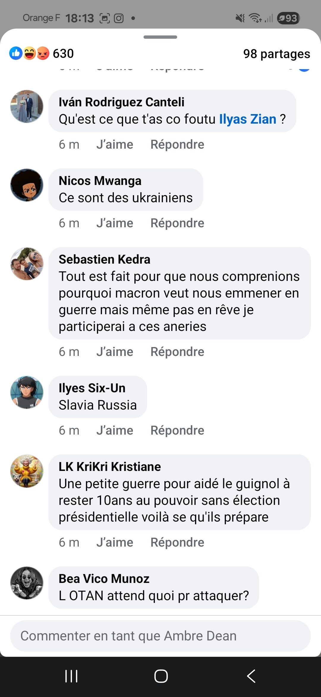 j'ai arrêté de lire les commentaires sur Facebook concernant la guerre que des africains pro russe payé ou non qui raconte que des conneries