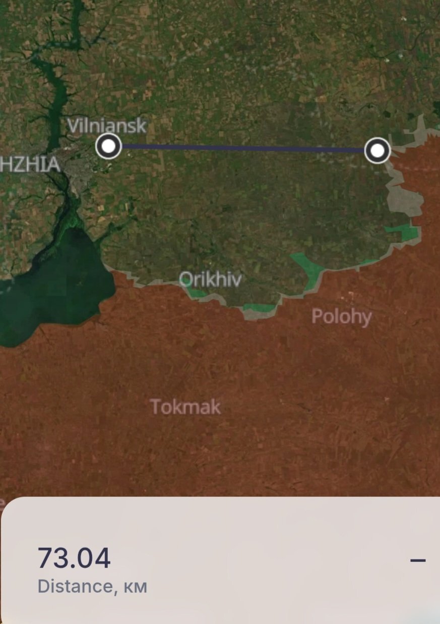 Depuis la chute de Vuhledar, en octobre 2024, les forces russes ont progressé d'environ 73 km vers l'ouest. Si leur progression se poursuit au rythme actuel, la Russie atteindra Zaporijia fin de l'été 2026.