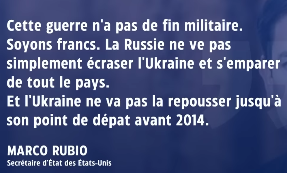 Pour le coup rubio a raison, et ça avait été dis depuis presque le début de cette guerre, elle ne se finira pas par une victoire militaire d'un camp ou de l'autre mais par l'effondrement interne d'un des deux camps, comme la première guerre mondiale