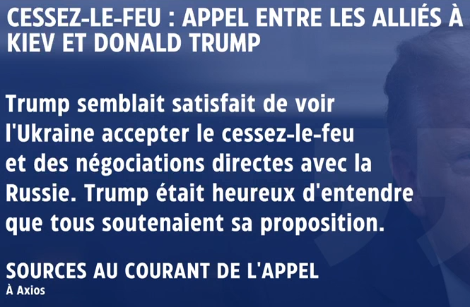 Trump semblait satisfait de voir l'Ukraine accepter le cessez-le-feu et des négociations directes avec la russie. Trump était heureux d'entendre que tous soutenaient sa proposition.