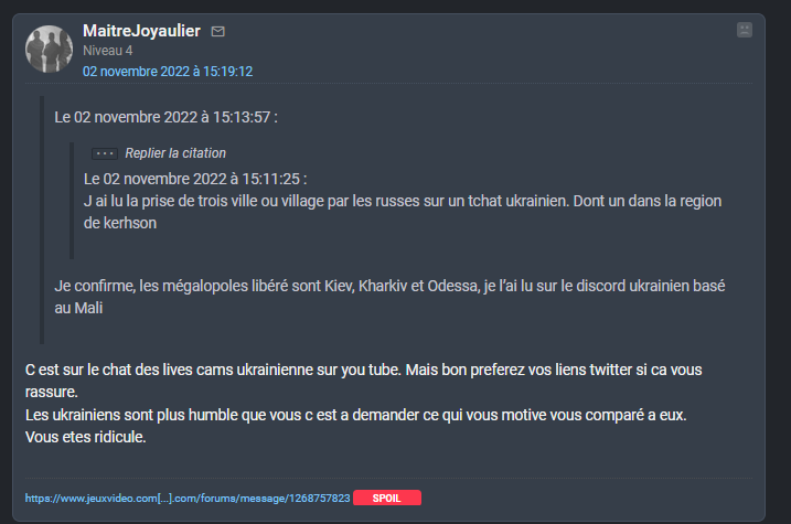 >Siouplix/Spartan-02 encore une fois brisé n'a rien trouvé de mieux que l'insulte quand on met à terre ses mensonges et ses croyances digne d'un monde parallèle...