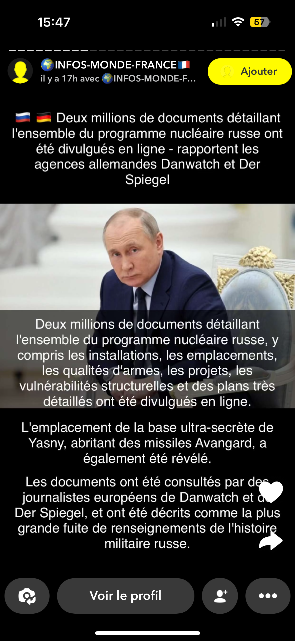 C'est quel niveau de malaisefaut dire que Poutine a dépassé de 5 ans l'espérance de vie moyenne d'un homme en Russie, c'est assez impressionnant