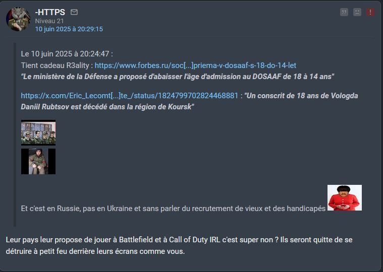 De « l’Ukraine envoie ses hommes jusqu’au dernier » to « Vive la Russie qui envoie des conscrits de 18 ans »