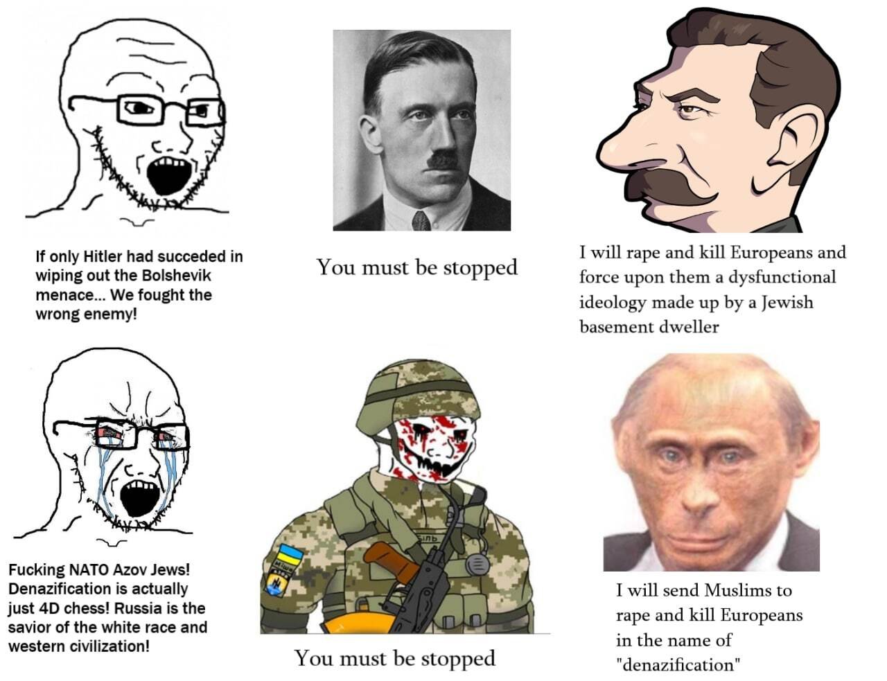 Denazifier un juif, sauver les russophones d'eux même (pour rappel la réaction des russophones en 2014 c'est créer Azov, ils voulaient pas de leur sauveur apparemment), défendre la race blanche avec des sibériens et Cie, repousser l'OTAN en poussant leur voisin dans leur bras, redevenir une superpuissance en se donnant à la chine, renforcé leur puissance militaire en cramant tout leur stock.