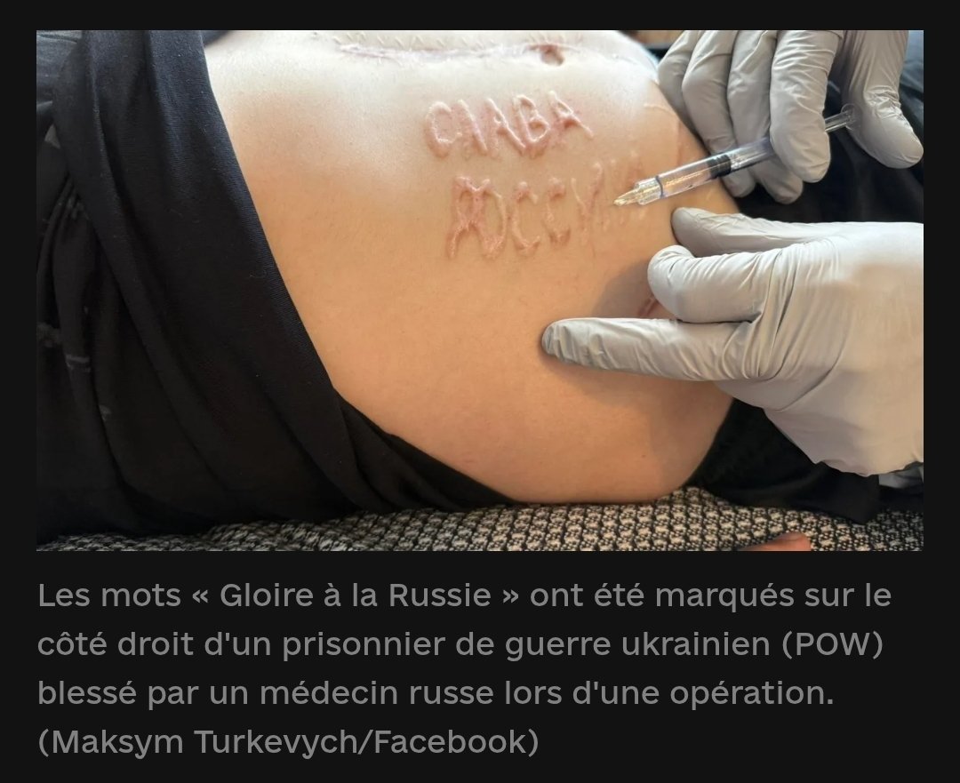 ‘Au-delà du cynique’ - Un médecin russe a gravé une cicatrice ‘Gloire à la Russie’ sur un prisonnier de guerre pendant une opération, selon l'Ukraine.Déjà débunk ta propagande t'as 2 semaines de retard