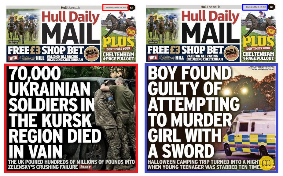 Démystifier les fausses informations russes. Le Hull Daily Mail n'a pas parlé des 70 000 soldats ukrainiens tués dans l'oblast russe de Koursk.