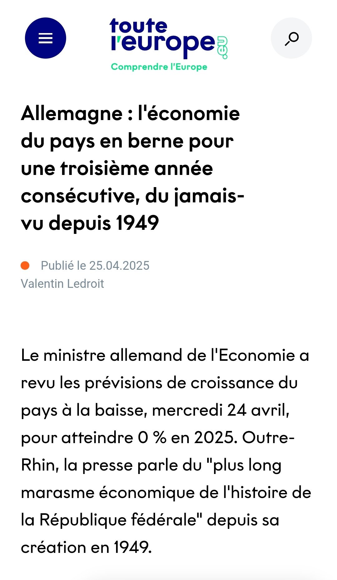 Non c'est ton gourou qui le dit lui même https://www.lindependant.fr/2025/06/20/cela-ne-doit-etre-tolere-sous-aucun-pretexte-vladimir-poutine-craint-a-son-tour-que-la-russie-nentre-en-recession-le-budget-alloue-a-larmee-remis-en-12775388.php
