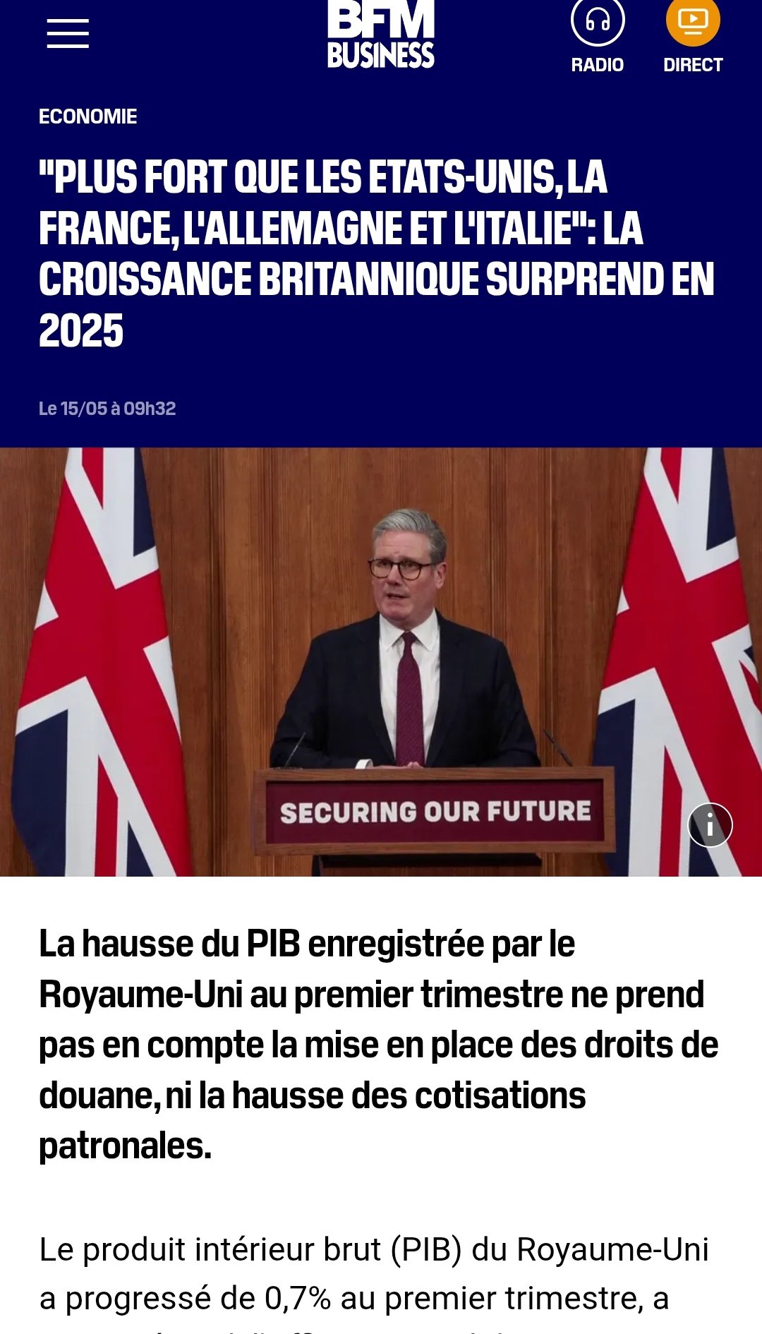 Le Royaume-Uni "meilleur élève du G7" avec 0,7% selon les Échos, mais "les difficultés arrivent".