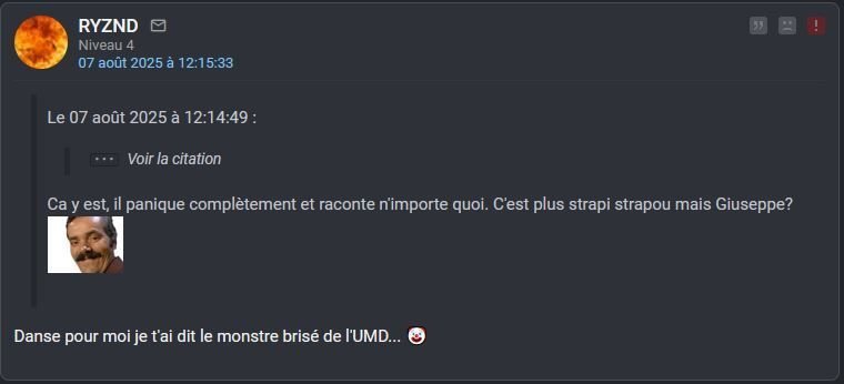 D'ailleurs, j'étais obligé d'aller voir la signification de l’acronyme UMD. Etrange que tu le connaisses![]()